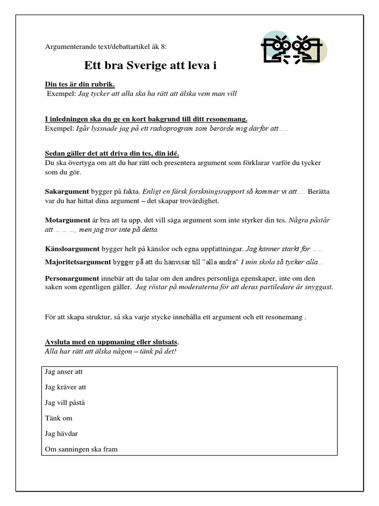 Hur Du Skriver En Argumenterande Text Svenska B Svenska 2 Pdf